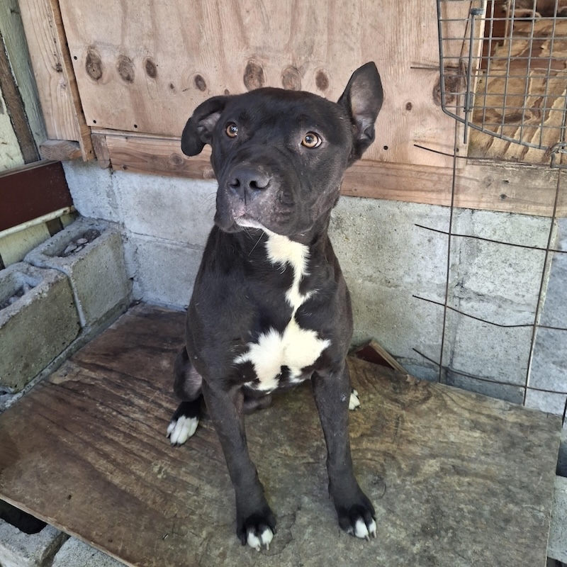 Domino is a sweet and playful one-year-old pitbull mix, he gets along well with dogs and cats and children.